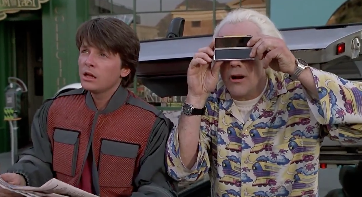 One of the things that this film is remembered for is its visualisation of the future. Seeing all of these technological advancements in terms of cars, and clothes, and shoes, and hover-boards was incredibly mind-blowing for me when i watched it so you could imagine how it must have been for an audience that was even further away from that possible reality. It was a very interesting contrast with other more dirty dystopian futures you see in most sci-fi films, the cleaner, brighter look made it so much more memorable. Like i said, they are the scenes everyone remembers, the hover-board chase scene is an iconic action sequence that will never be forgotten, the sequence in Marty’s future house was amazing seeing all of the small but significant advances in technology that people would only dream of. Many people often forget that the film also does represent the future in a very dystopian environment, and i thought in its own way, that was a very interesting juxtaposition to put in this film. Although it wasn’t as fun and lively as seeing the cleaner future it was definitely interesting to see how greed and a money driven future would look like. Looking back on it now, i would say that the Dystopian representation of the future isn’t any more far off than the Cleaner, more technologically advanced one, just saying.